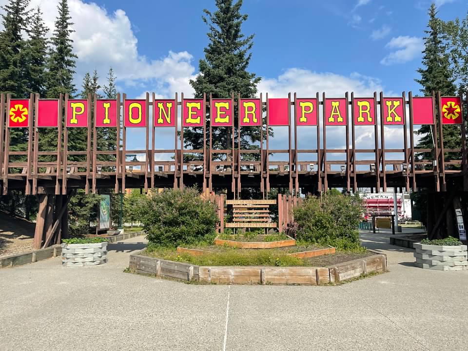 Later that evening we made reservations for the Aurora Ice Bar which was located an hour outside of Fairbanks. The Ice Bar was built from over 1,000 tons of ice and the tour offers an Appletini to their guests that comes served in a handcrafted ice glass. Unfortunately, we got turned around in the Alaskan wilderness and by the time we arrived in the Chena Hot Springs, the Ice House was closed. From the North Pole we headed into Fairbanks where we spent a couple hours at Pioneer Park. It was the 4th of July so the park, which was made to commemorate early Alaskan history, had a festive vibe.