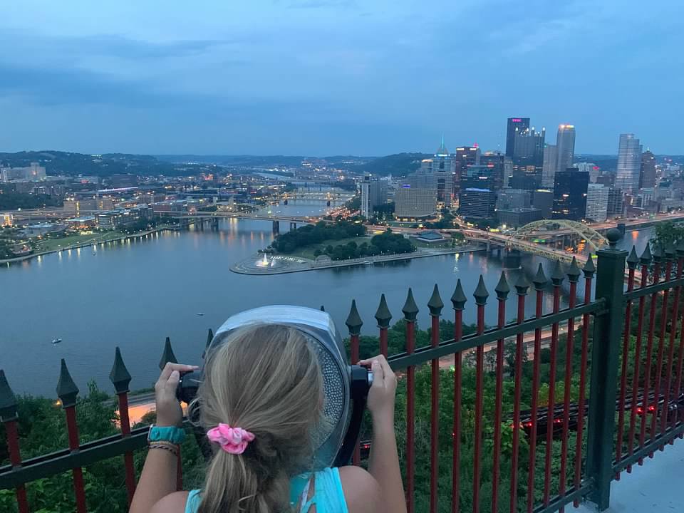 Both girls ended up being successful in their endeavor and caught a handful of fireflies inside a glass with a kleenex over the top. We kept them just long enough to see them light up in the glass and then let them go. From Shawnee we headed to Pittsburgh where we stayed downtown at a Holiday Inn. The hotel shared a parking lot with PNC Park, the home of MLB’s Pittsburgh Pirates. This was our first experience with Pittsburgh and we really didn’t have any preconceived ideas as to what to expect. Our first morning in the city, we explored the walking path’s on both sides of the Allegheny River.