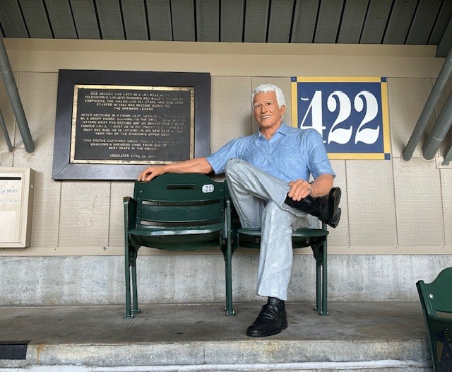 I explain the commercial because the Brewers have done an awesome job of immortalizing Bob Uecker and the hilarious commercial with a plaque and a statue of Bob Uecker at the very top row of the stadium. It is located behind home plate, with a view obstructed that is obstructed by a pole – exactly like it the commercial. My advice is to get there early and sit with Mr. Baseball!