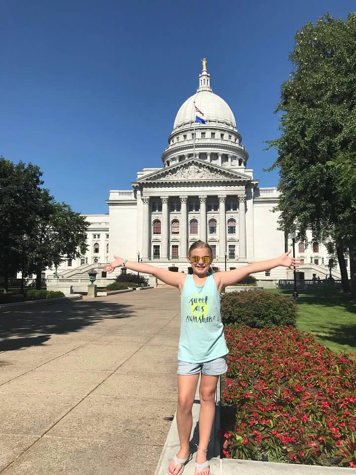With my youngest daughter being named Madison, we made a point to drive the hour and a half west to the capital city of Madison. After taking a handful of random photos of her with Madison signs, we then toured the grounds of the Capital.