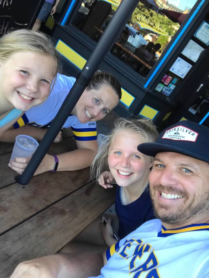 The whole family attended a weekend day game on jersey give-a-way day.
