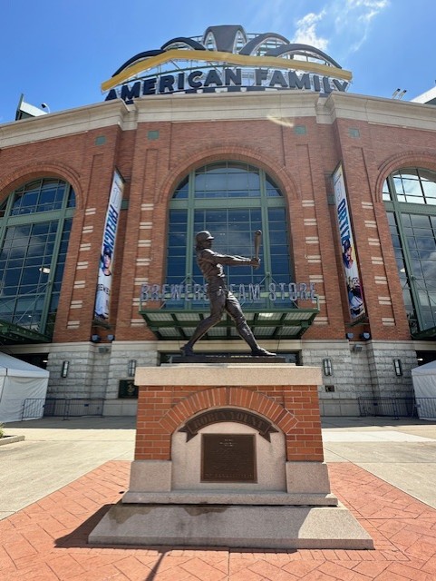 Prior to entering the stadium we walked around the exterior where we stumbled upon the Walk of Fame as well as statues of Milwaukee greats Henry Aaron, Bob Uecker, and Bud Selig.