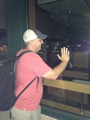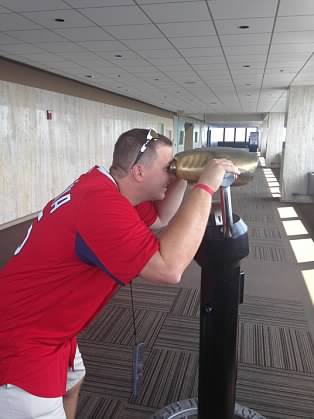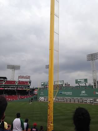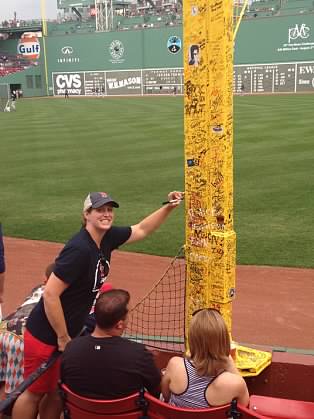 The outfield fence at Fenway is extremely unique in the fact it jets in and out, is extremely tall in left field, and then short in right field. Infielder Johnny Pesky (1946-1952) used to take advantage of the short porch directly down the right field line by pulling home runs off the foul pole; thus earning the nickname from Fenway Faithful, “Pesky’s Pole.” Somewhere along the line fans began signing the foul pole – Jill signed for the both of us prior to the game.